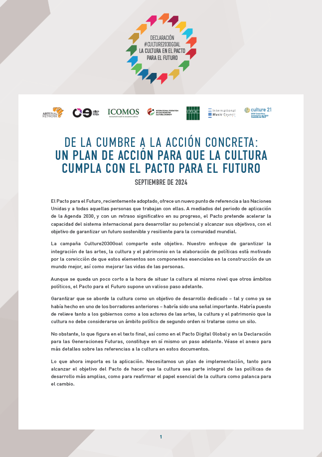 This document is the contribution of the #Culture2030Goal campaign to the draft of the UN Pact for the Future.